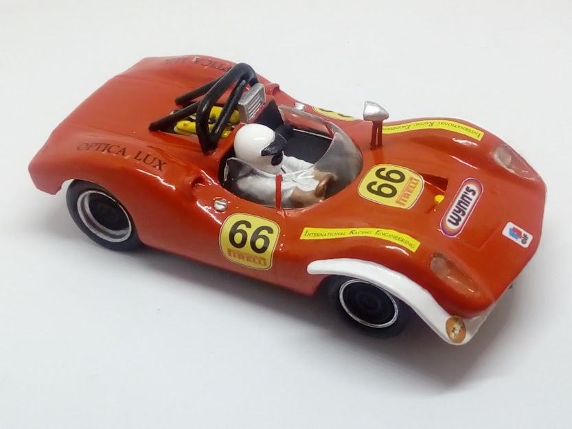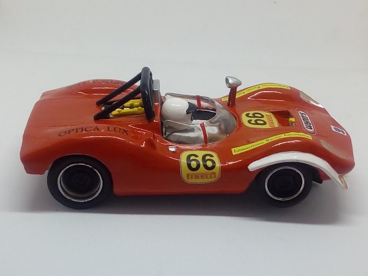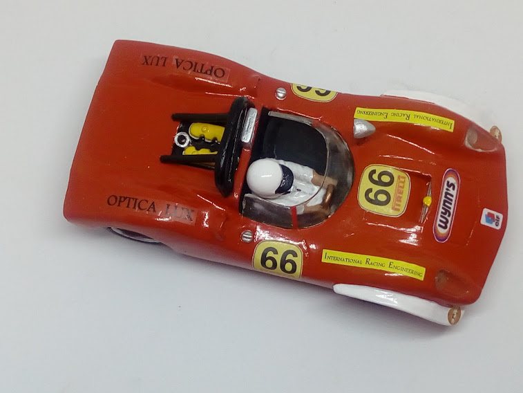 Kit en resina para pintar en escala 1/32, compuesto de carrocería, arco de seguridad, casco piloto, retrovisor, tapacubos llantas, parabrisas transparente, faros delanteros, luces traseras y hoja de calcas.