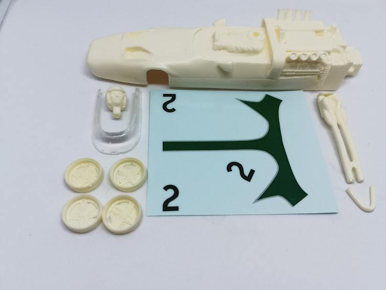 Kit de resina para pintar compuesto de carrocería, cabeza piloto, parabrisas transparente, arco de seguridad, escapes, tapacubos llantas y hoja de calcas.