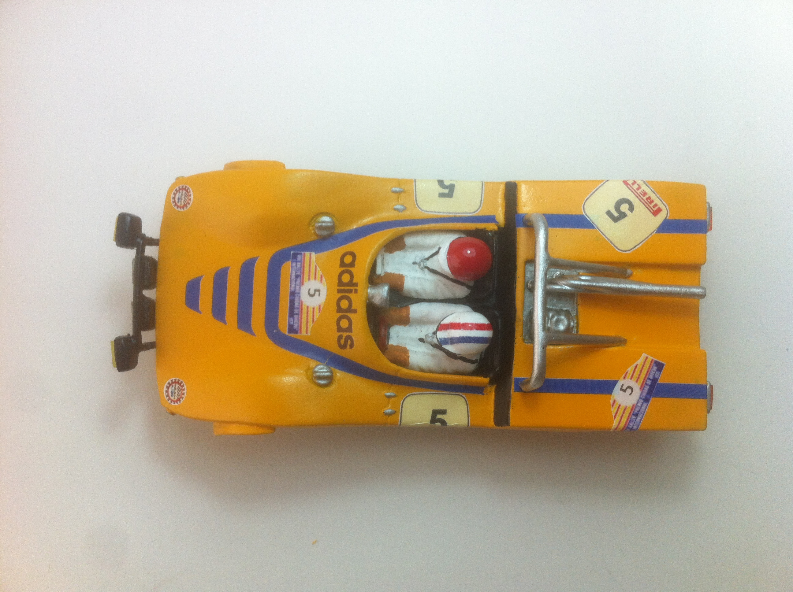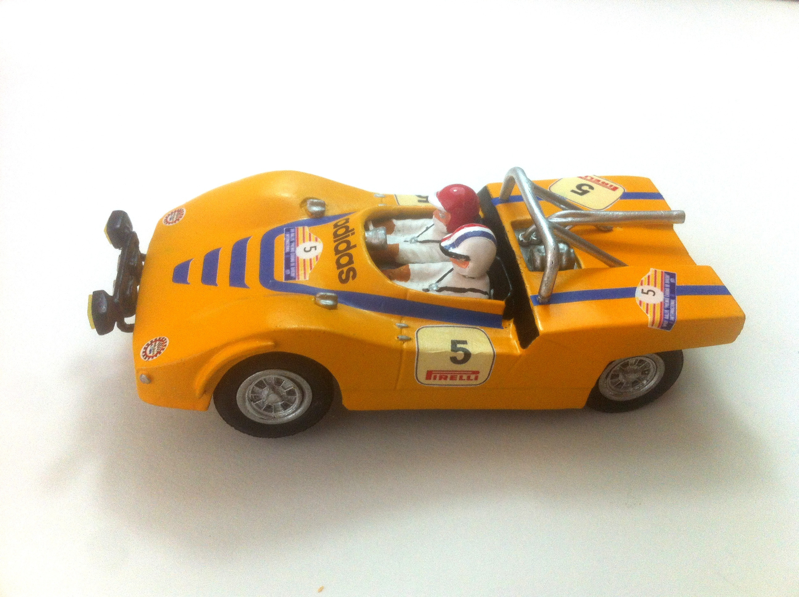 Debido al retraso en la entrega del motor, y estando el chasis terminado, (un chasis de R4 invirtiendo el sentido de la marcha para poder instalar el motor central) optó entonces por la instalación de un Renault de 1448 c.c., con el que debutó en la III Subida al Rodical, pilotándola él mismo, en Agosto de 1971, para a continuación aparecer en el Rally de Oviedo pilotada por José Manuel Lencina, a la cuál hace honor la decoración presentada.