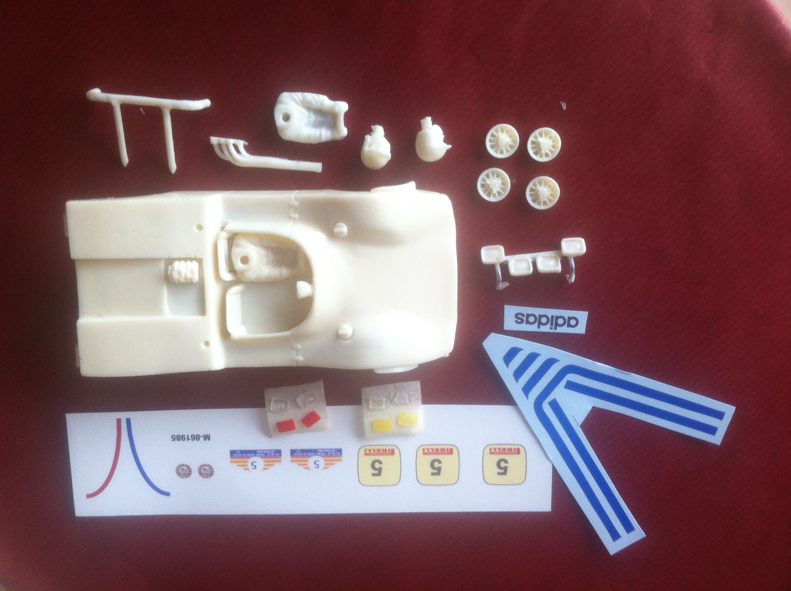 Kit de resina sin pintar compuesto de carrocería, piloto y hoja de calcas.